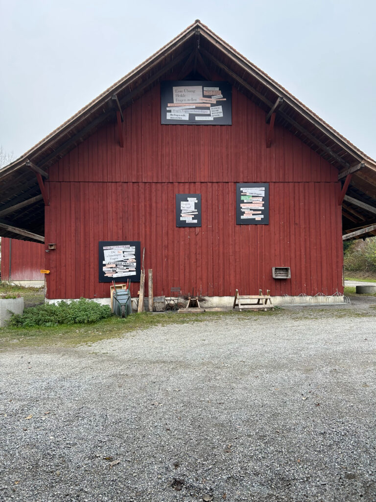 Rohstoff, Material, Medium und Ausdruck zugleich, ist die Sprache das große und allgegenwärtige Thema von Veronika Schubert. Auf dieser Basis umfasst das Schaffen der Vorarlberger Künstlerin Fotografien, Collagen und Textarbeiten sowie ihre aufwendig produzierten, auf Filmfestivals mehrfach ausgezeichnete Trick- und Animationsfilme. Auch in ihrer künstlerischen Intervention für das Hofkultur-Festival geht es nur um das eine, um Sprache, wenn Veronika Schubert die Fassade des roten Stadels vom Gutshof Heidensand als Kommunikations- und Interventionsfläche bespielt.