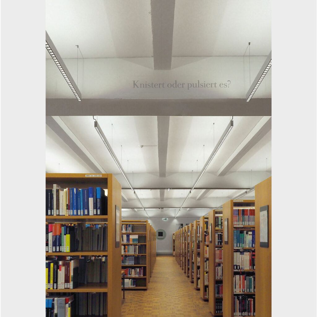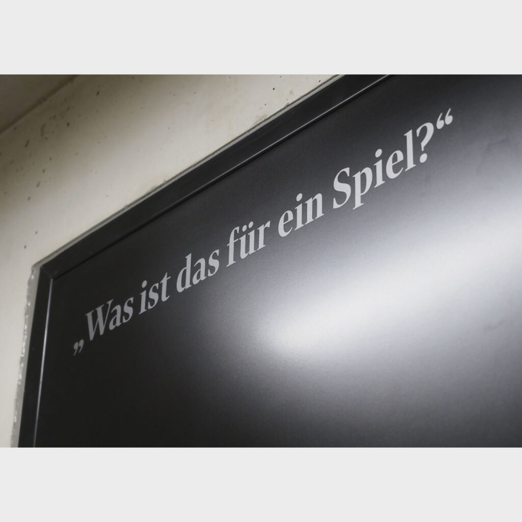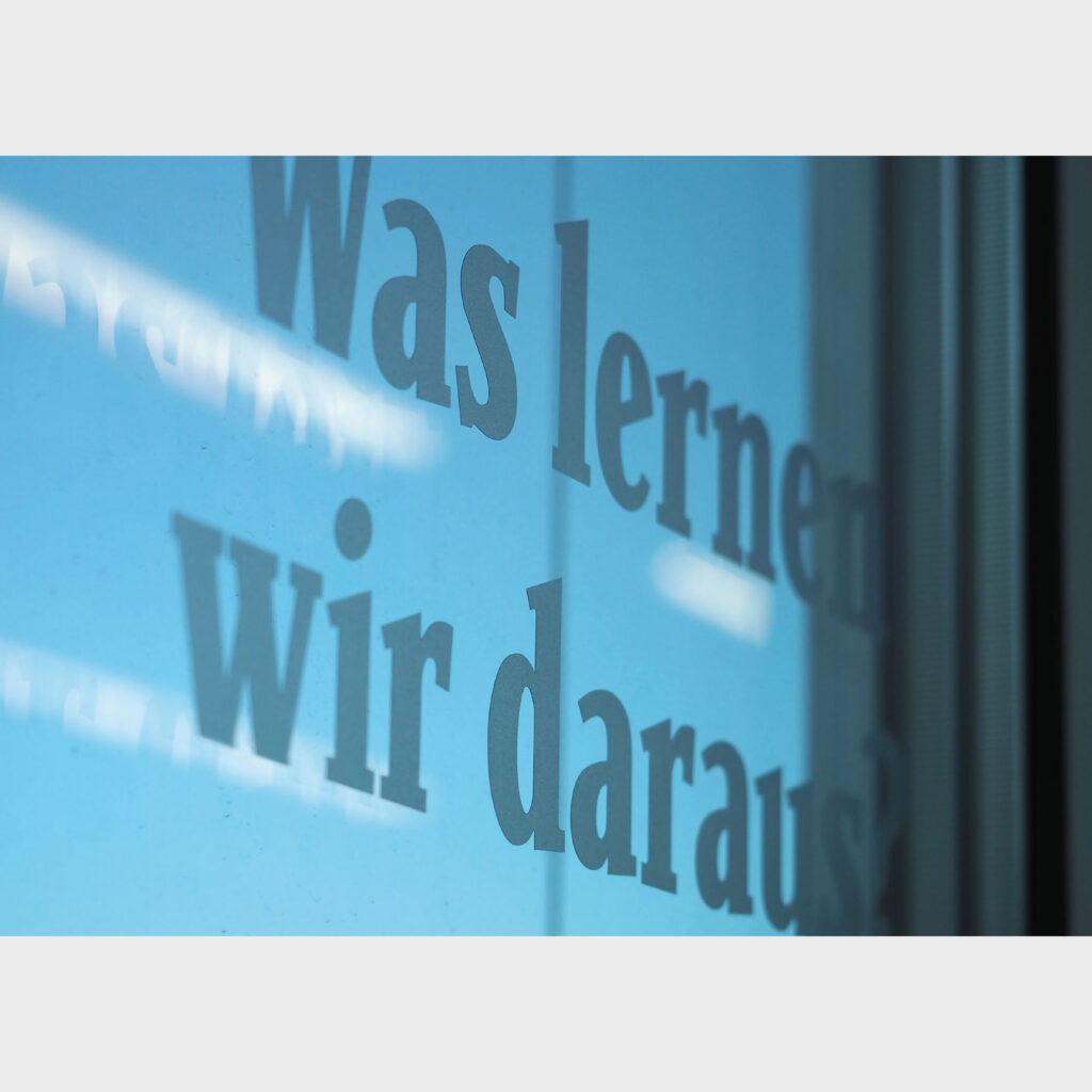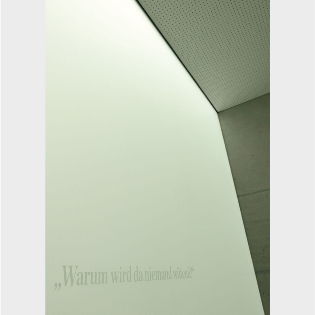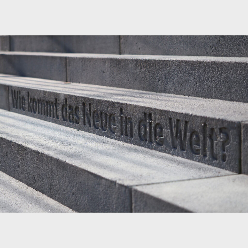 26 Zeitungsüberschriften wurden in der exakten Typografie des jeweiligen Ursprungsmediums über das gesamte Campusgelände verteilt auf unterschiedliche Weise in die Architektur integriert: in eine Stahlwand eingelassen oder in Betonstufen gegossen, gemalt und geklebt – subtil oder großflächig.